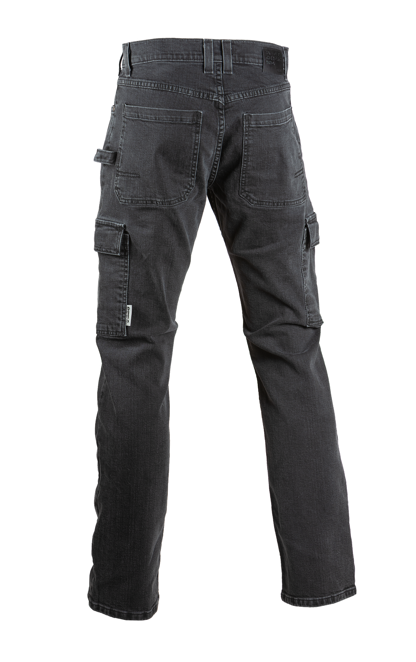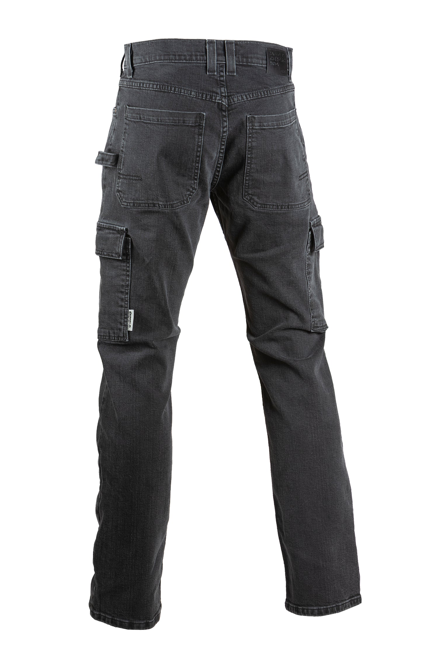 Kivipestyt, tummanharmaat farkut pienellä joustolla. Tilavissa reisitaskuissa piilonepparikiinnitys.