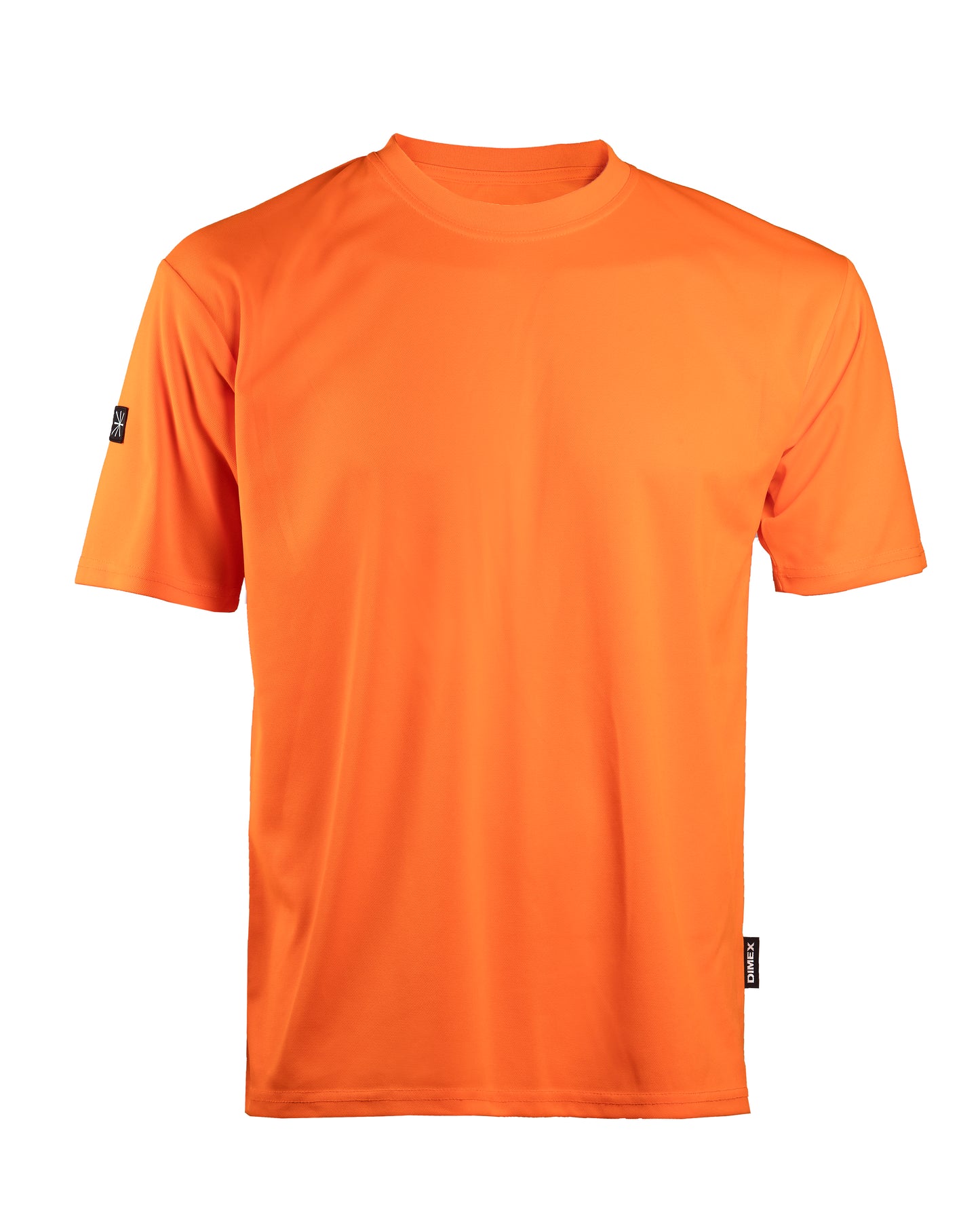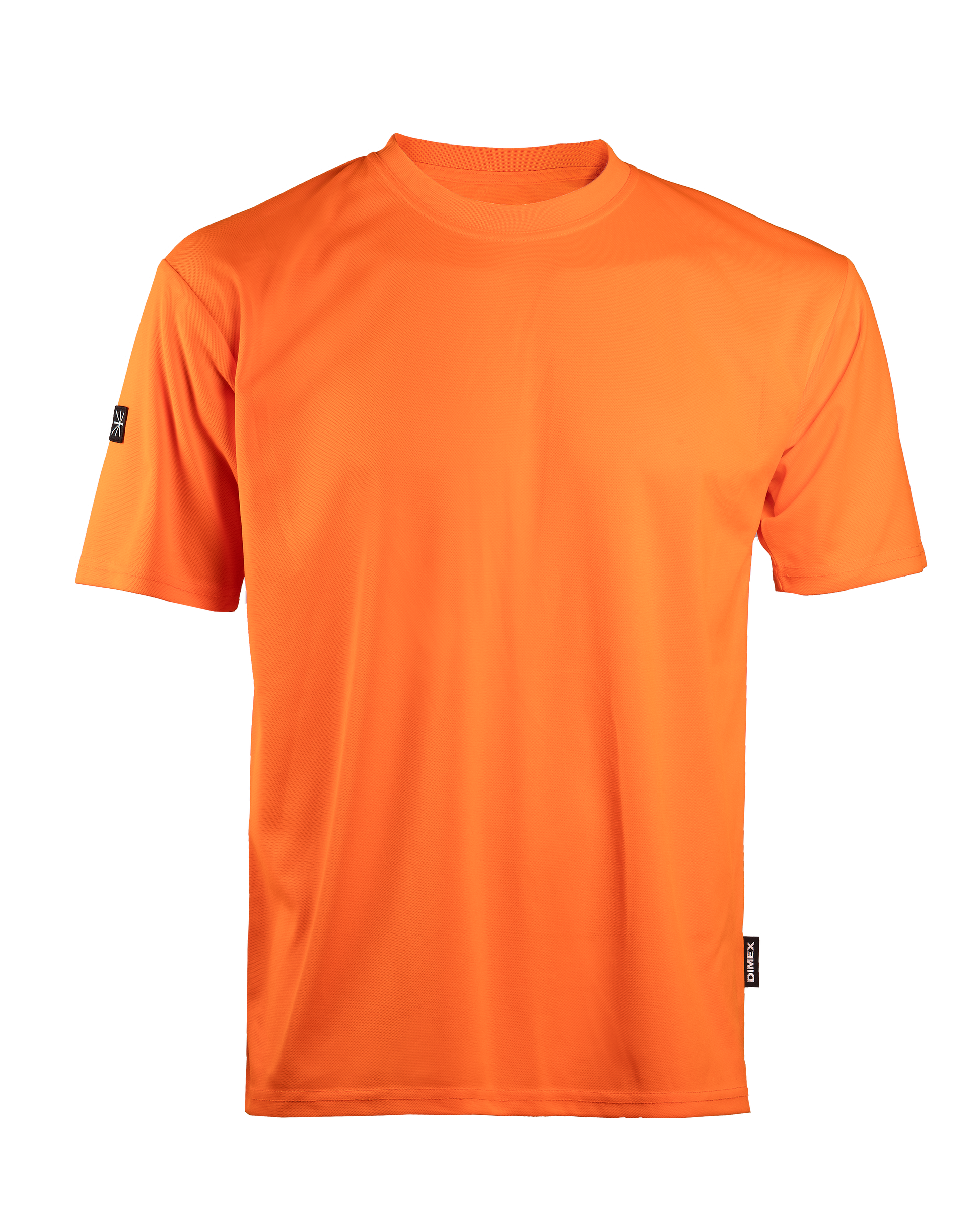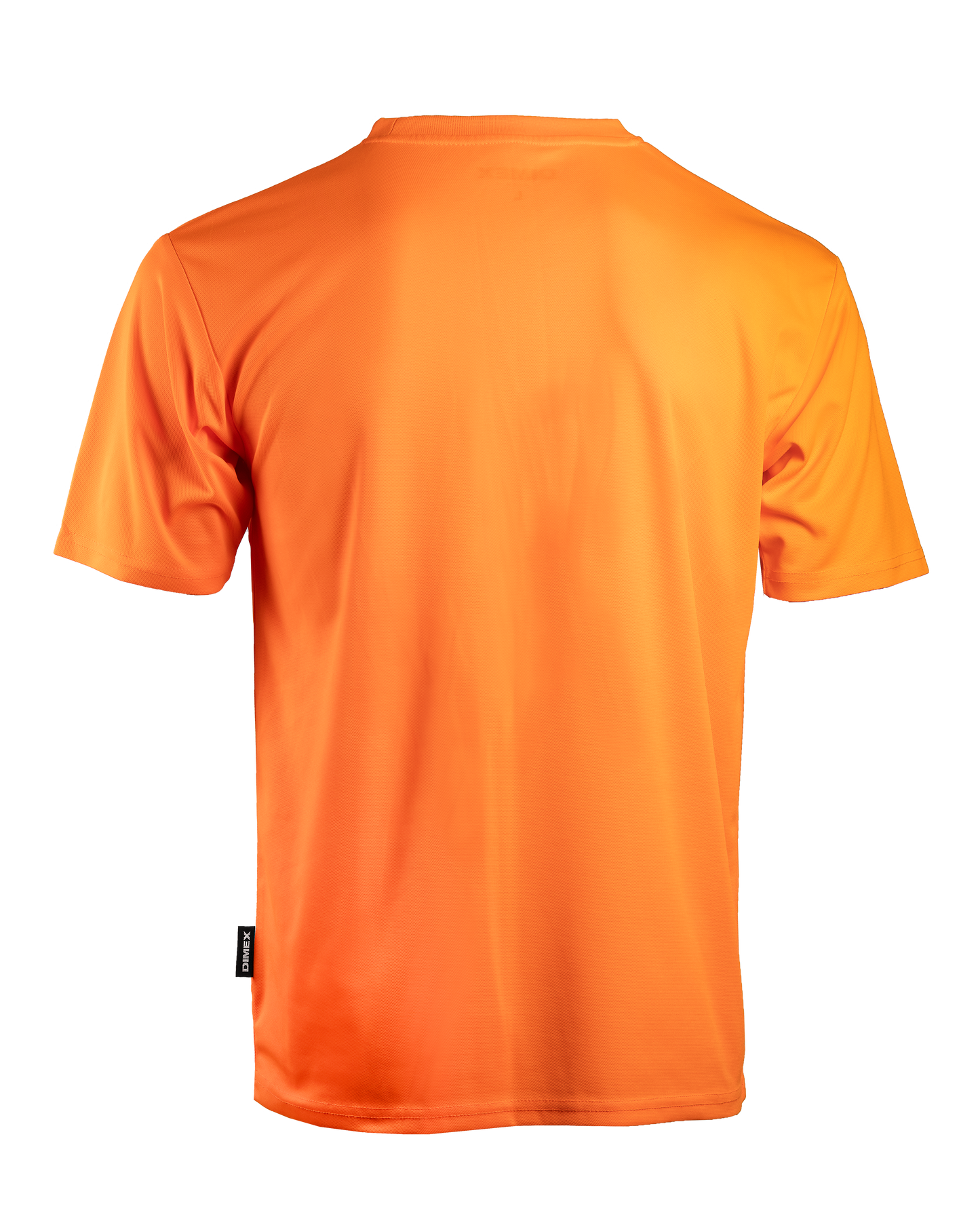 Huomiovärinen t-paita työhön tai vapaa-aikaan. Polyesterimateriaali tuntuu mukavalta ja kevyeltä käytössä sekä kuivuu nopeasti.