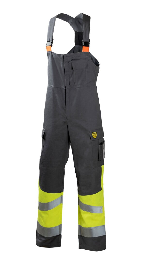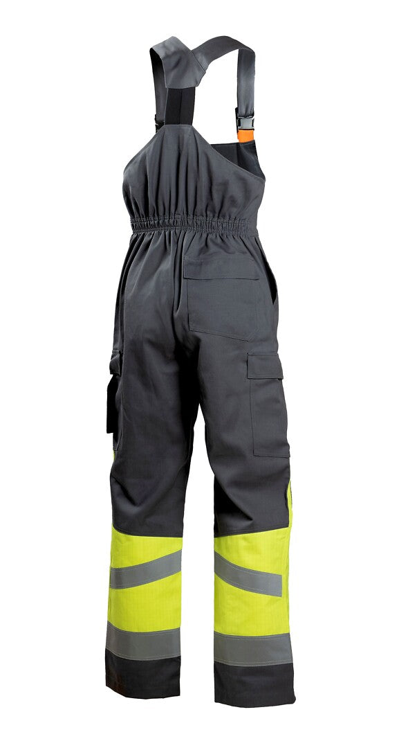 Puhelin- ja kynätasku Etutaskut Reisitaskut, esiin otettava vaaka/pysty henkilökorttitasku vasemman reisitaskun sisällä Takatasku Kuminauha takana vyötäröllä Polvisuojataskut sisäpuolella Korkea selkäosa ja tukevat, säädettävät olkaimet Suojalista etuvetoketjun alla 4 cm pidennysvara, ei huoliteltu Kaksisuuntainen etuvetoketju Heijastimet 50/70 mm. Pesulämpötila 60 astetta Palosuojaus on toteutettu kankaaseen imeyttämällä. Kankaan palosuojaus on testattu 50:llä pesukerralla Tulitöitä tehtäessä on käytettävä standardin täyttäviä ylä- ja alaosaa. Yhdisteltävyys näkyvyysluokkaan 3 Dimex Multi-yläosien kanssa.