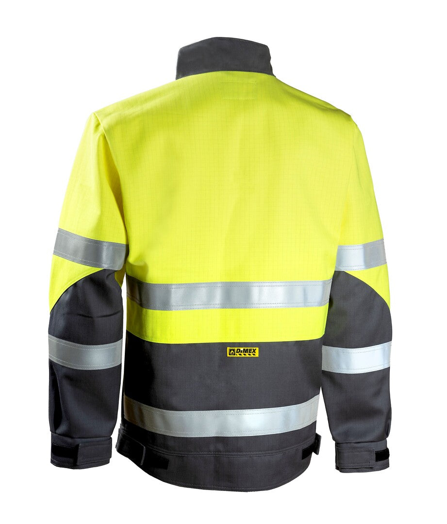 Rintataskut, oikeassa esiin otettava vaaka/pysty henkilökorttitasku, vasemmalla kynä- ja puhelintaskut Vetoketjulliset alataskut Vetoketjullinen povitasku Etulista, pitkä suojalista etuvetoketjun alla Tarroilla säädettävä hiha ja helma Heijastimet 50 mm. Pesulämpötila 60 astetta Palosuojaus on toteutettu kankaaseen imeyttämällä. Kankaan palosuojaus on testattu 50:llä pesukerralla Tulitöitä tehtäessä on käytettävä standardin täyttäviä ylä- ja alaosaa. Yhdisteltävyys näkyvyysluokkaan 3 Dimex Multi-alaosien kanssa.
