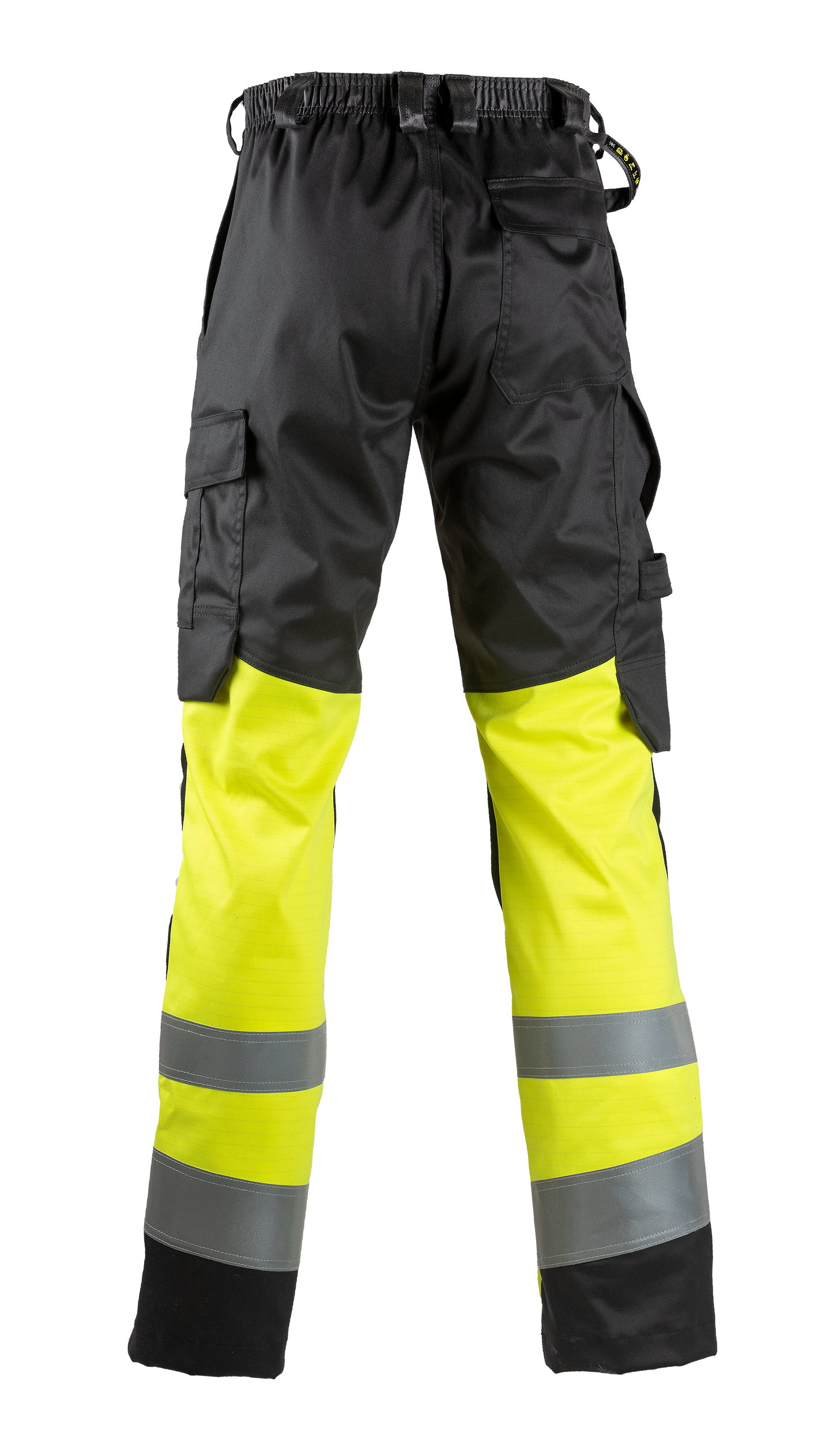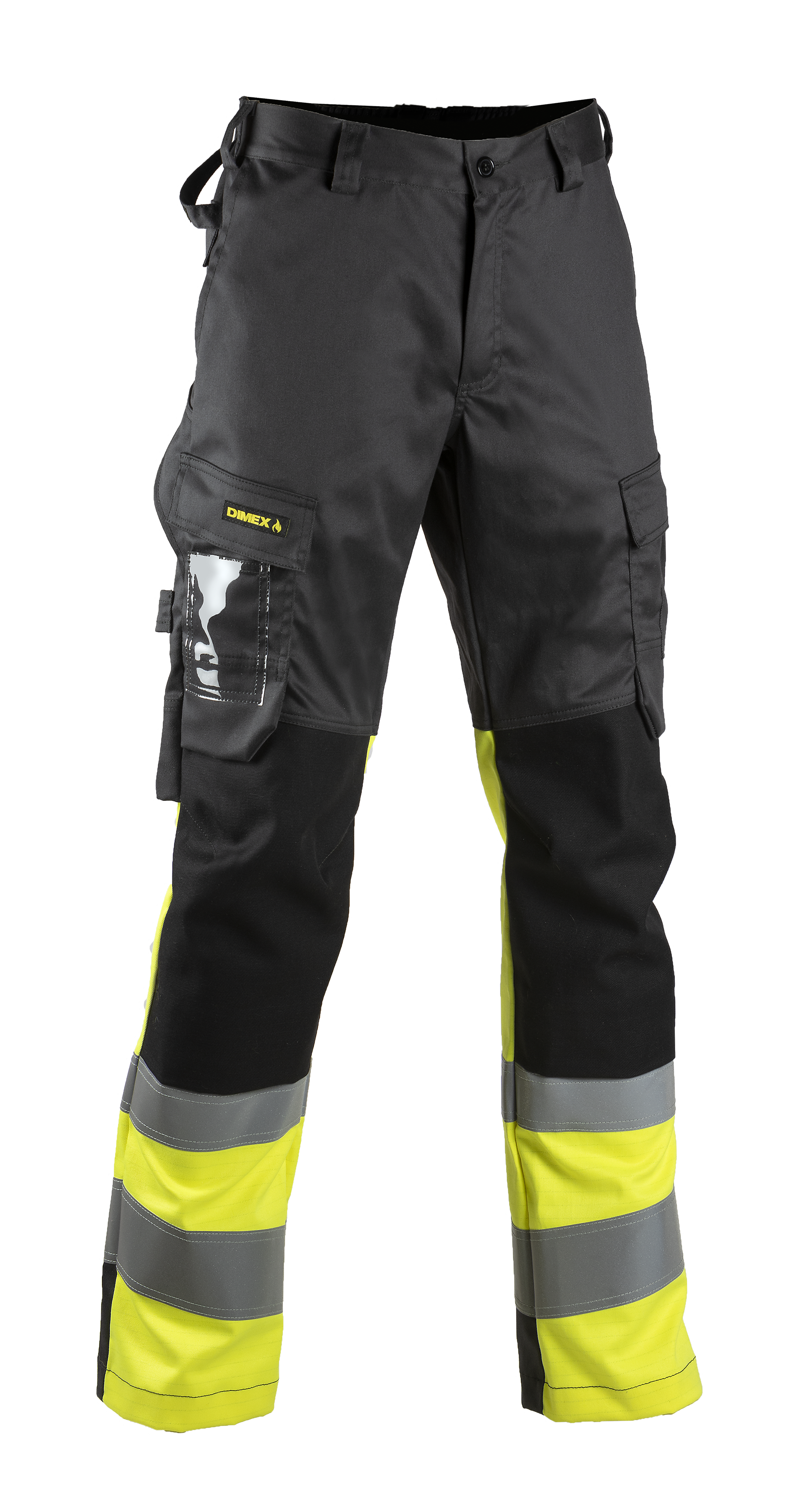 Nämä Dimexin työhousut ovat joustava valinta niihin työpisteisiin, joissa työvaatteelta vaaditaan useita suojaavuuksia. Kangas joustaa kahteen suuntaan ja tuo näin ollen käyttömukavuutta ja liikkumavaraa housuihin. Multisuojaavana tuotteena näissä housuissa on sertifikaatit palo- ja hitsaustyöhön sekä näkyvyyteen luokassa 1. Lisänä myös sähkö- ja valokaarisuojaus.