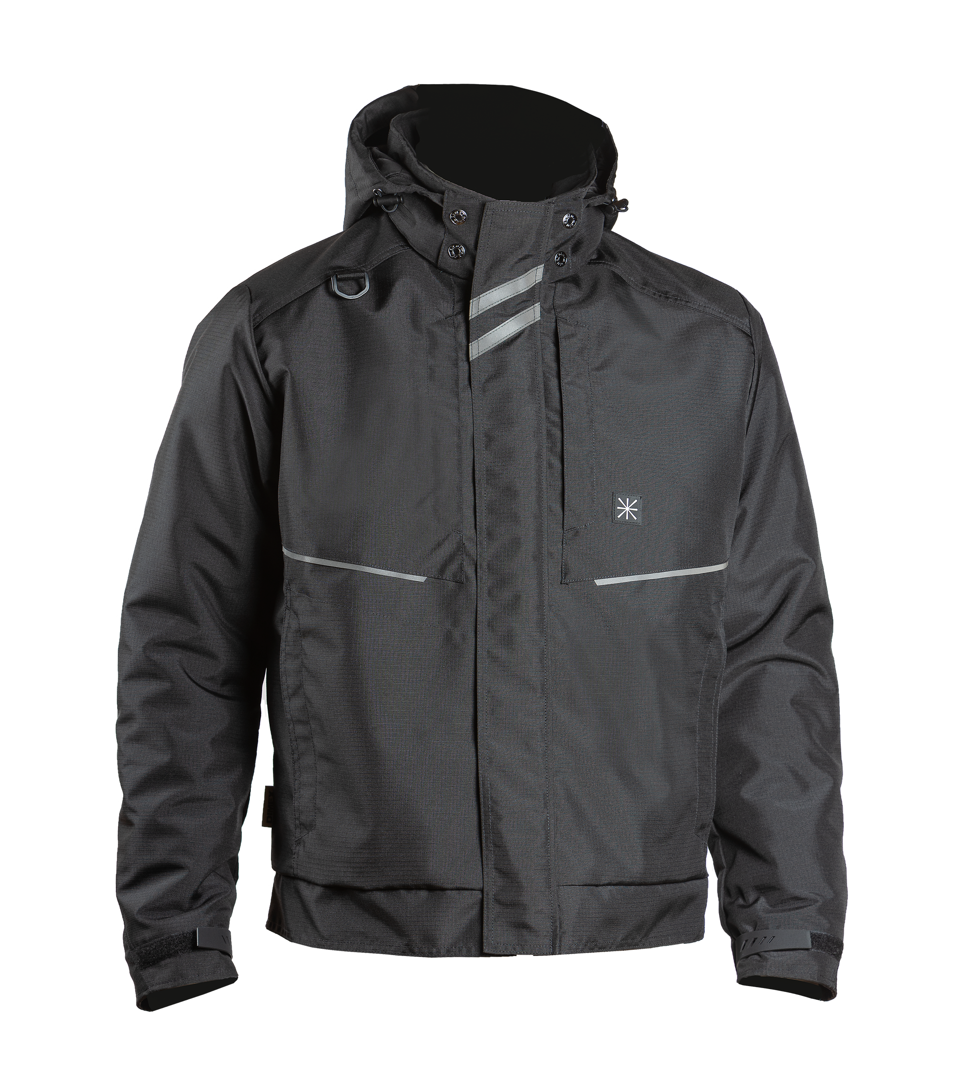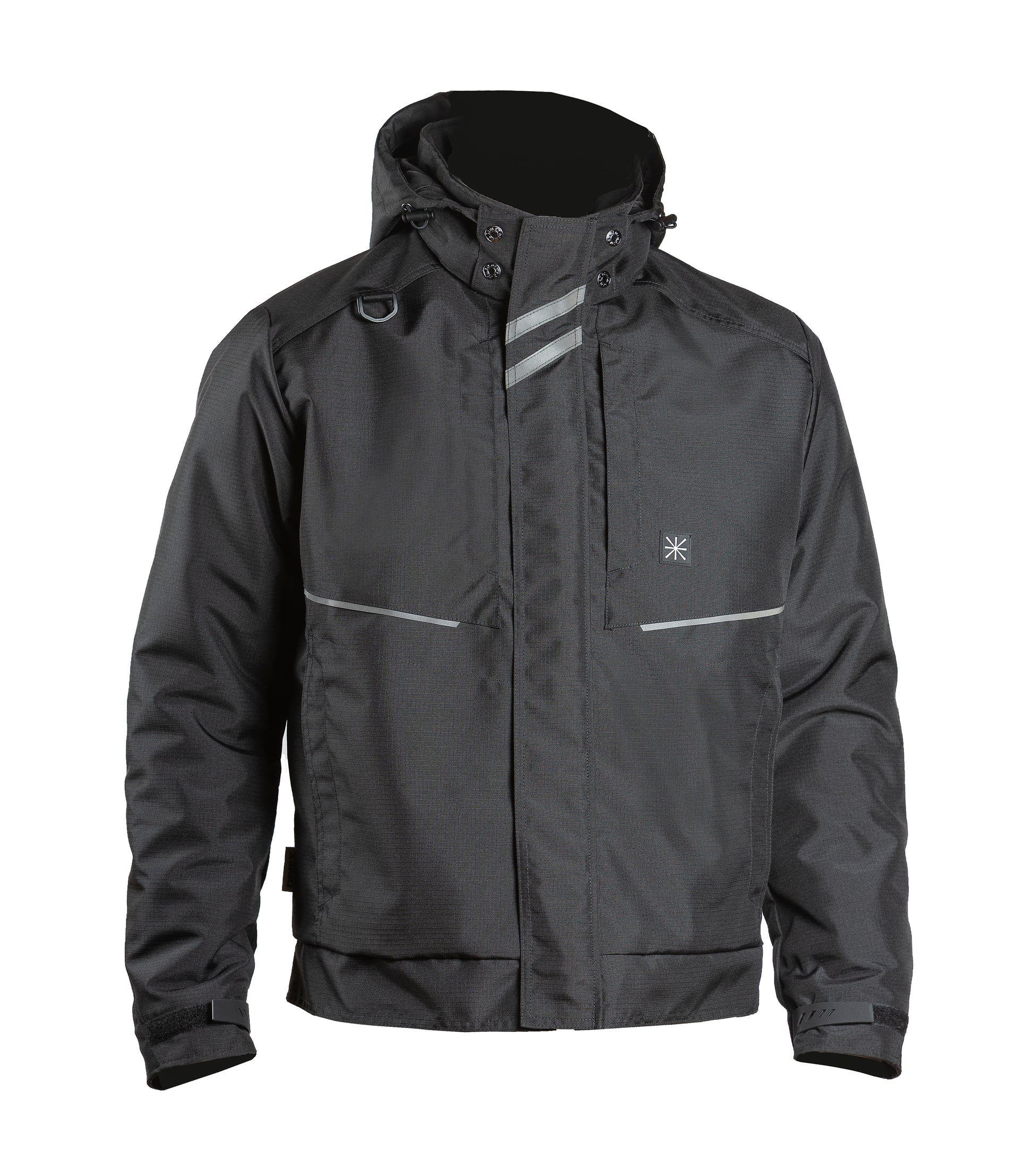 Dimex talvitakki, joka pitää lämpimänä kovemmallakin pakkasella. Materiaali on veden ja tuulenpitävä ja Thinsulate-tikkivuori on ilmava ja lämmin. Huppu on irrotettavissa ja myös säädettävissä sopivaksi joustonyörillä ja tarralla. Hihoissa on sisäpuolella mukava resori ja myös hihat ja helman saa tarroilla säädettyä tiukemmaksi. Runsaasti taskutilaa.