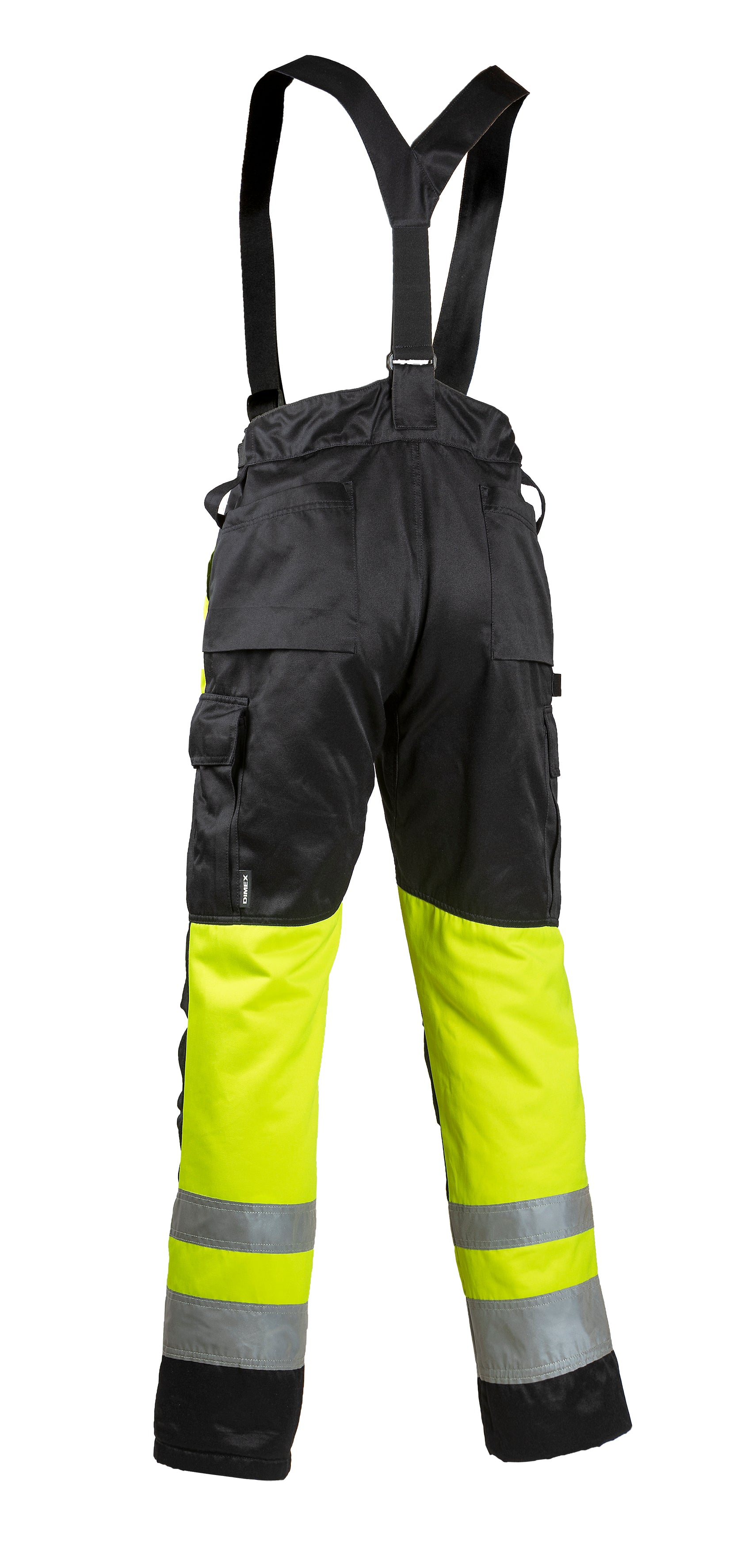 Dimexin suositut talviolkainhousut isomman mitoituksen mallina. Näistä työhousuista löytyy polvisuojataskut kahdella korkeudella sekä irrotettavat säädettävät olkaimet. Käyttömukavuutta lisää säädettävä kuminauhavyötärö pehmeällä trikoovuorella, haarakiila ja lumilukot lahkeissa.